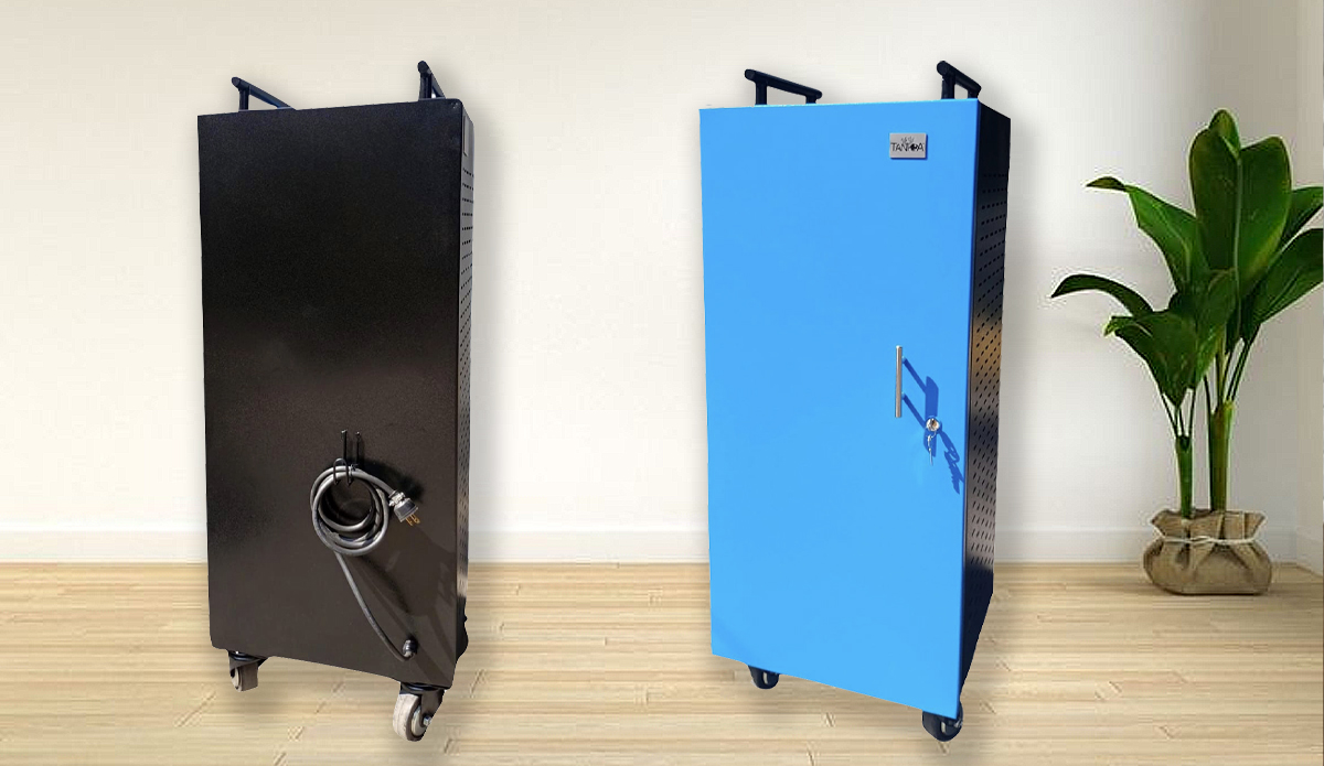 Al ser fabricado en acero asegura la protección integral de los dispositivos con una construcción estable, con un acabado de pintura electroestática horneada para larga duración y calidad. La puerta del gabinete se puede personalizar al color de la institución.